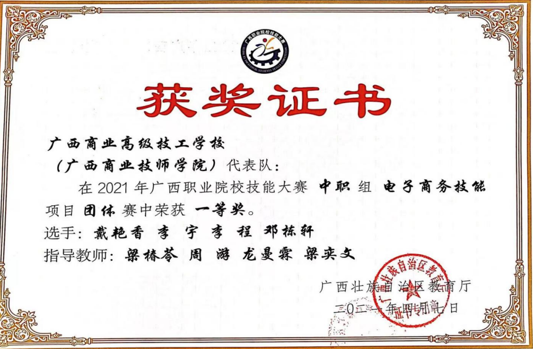 廣西商業(yè)技師學(xué)院參賽獲獎(jiǎng)