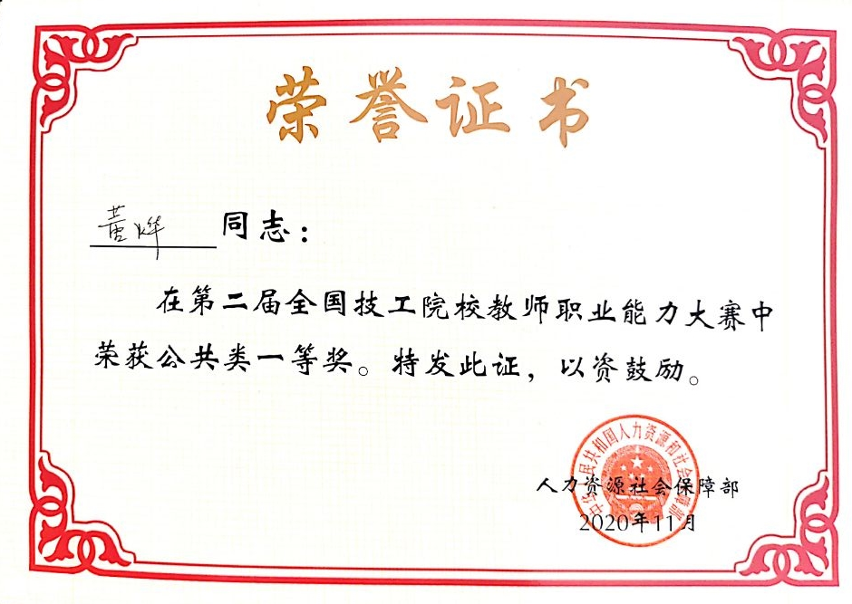 • 技工院校教師職業(yè)能力大賽公共類(lèi) 國(guó)家級(jí)一等獎(jiǎng)